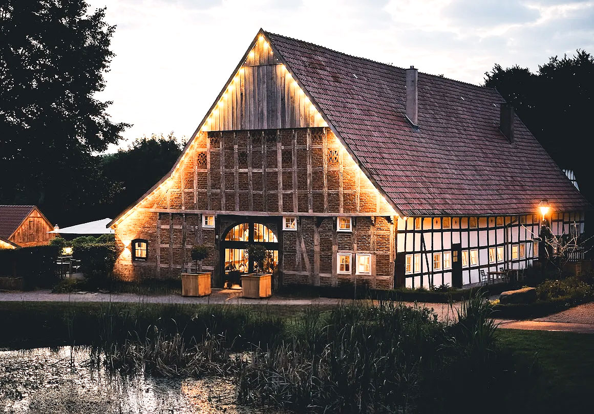 The wedding reception takes place at Hofrestaurant von Laer, Senderstraße 23, Herford — where we’ll eat, drink, and pretend our dance moves are impressive!